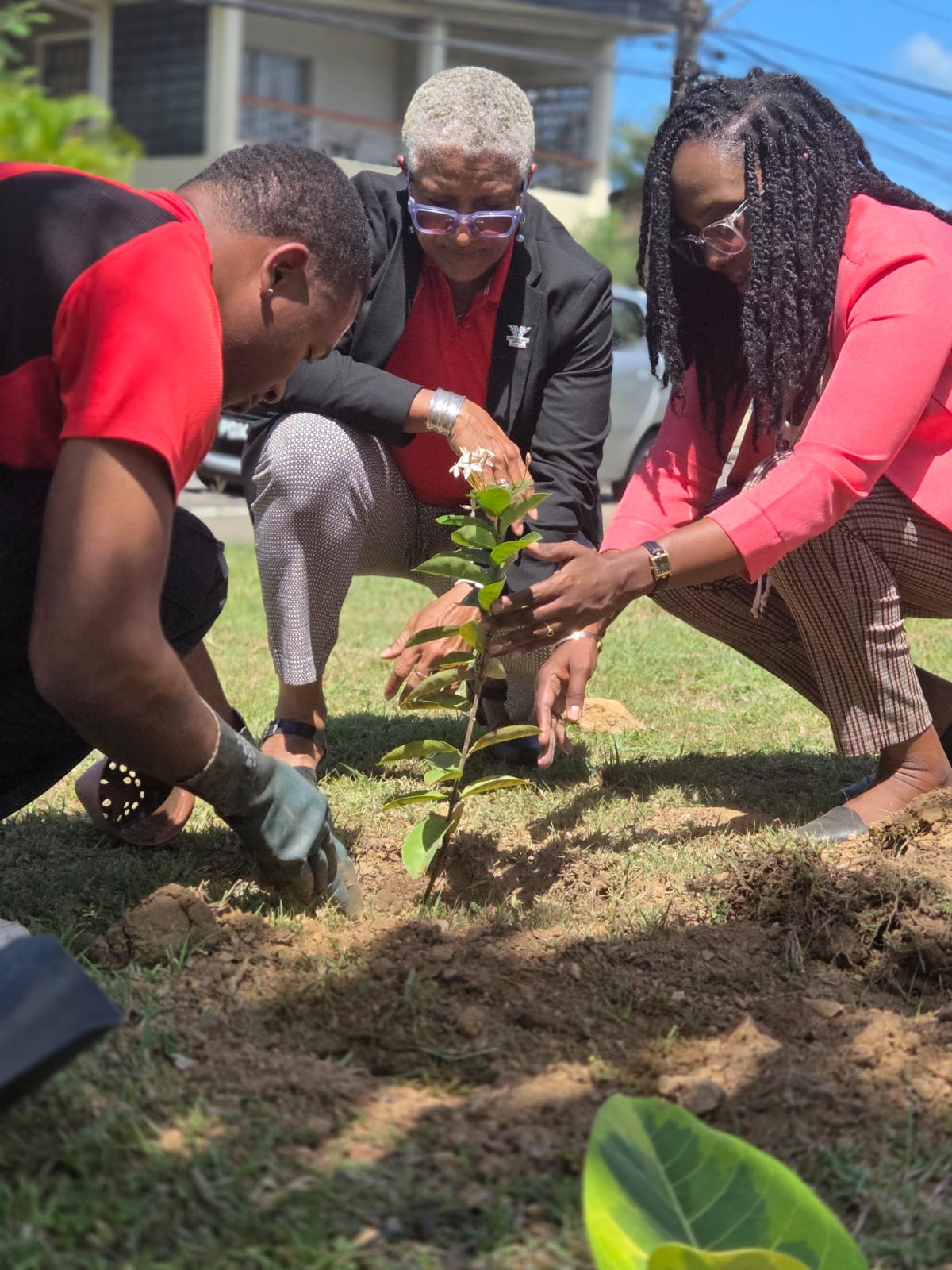 The ceremonial tree planting was carried out by President Henderson and Councillor Broune, symbolizing Trinidad and Tobago’s participation in the broader regional effort.